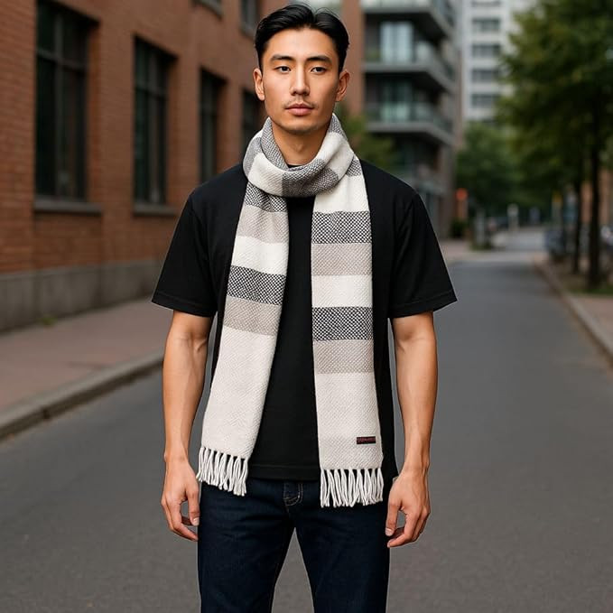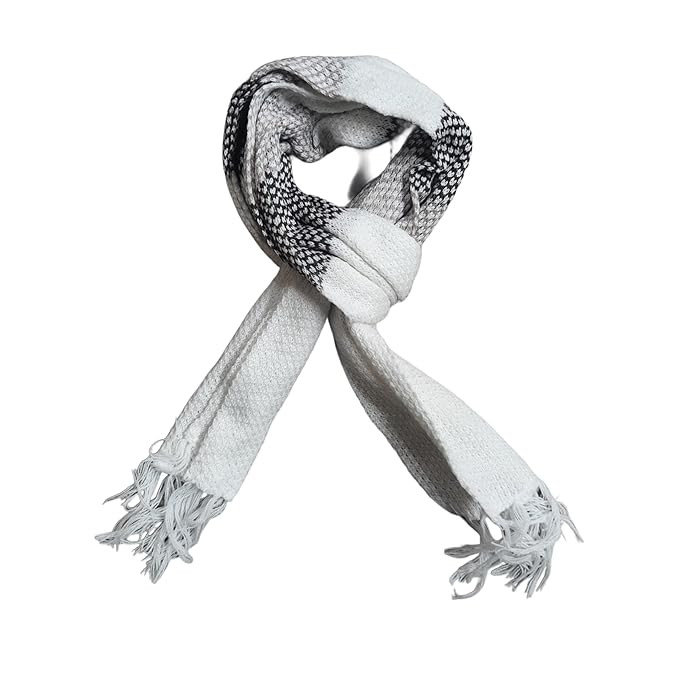 Stay warm and fashionable this winter with our premium woollen muffler. Crafted from a blend of soft, high-quality wool, this scarf offers ultimate comfort and insulation against the chill. Whether you're braving the chilly outdoors or simply looking to add a touch of sophistication to your ensemble, this muffler is the perfect accessory. Featuring a striking chevron pattern in contrasting shades of black and grey, it adds a stylish flair to any outfit. With fringed ends for a classic touch, this versatile muffler can be effortlessly styled in numerous ways. Wrap it around your n