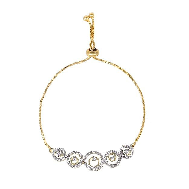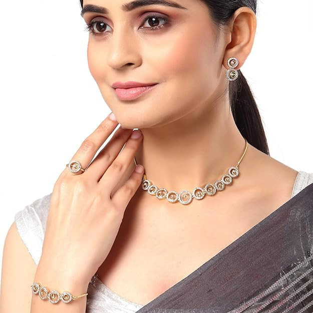 Fashion Jewelry Combo of Choker Necklace Set with Earrings, Bracelet & Ring for Women: Gold & Rhodium Plated Stylish & Elegant American Diamond Combo of Jewelry Set for Girls & Women