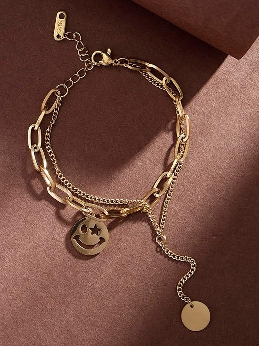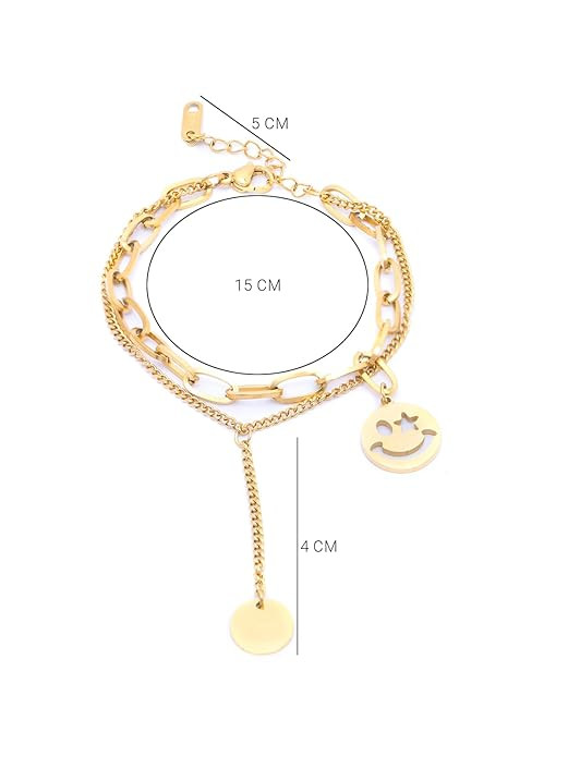 Western Stainless Steel Smiley Charm Adjustable Bracelet Jewellery for Women and Girls|Anti Tarnish Jewellery|Gifts for Wife Girlfriend Mother Sister