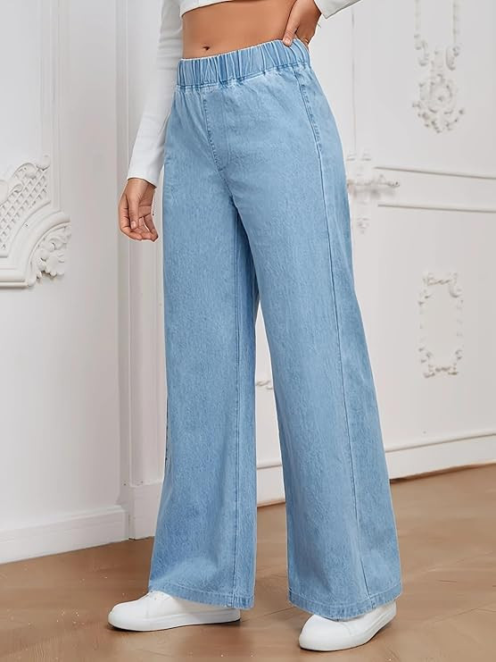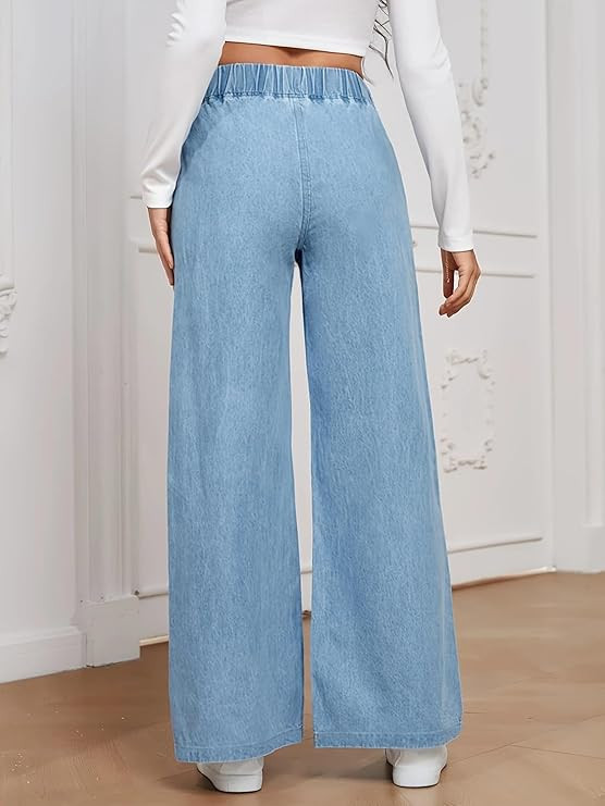 Women's Stretch Denim Wide Leg Jeans Comfort Fit with Elastic Waistband, Straight Cut, Casual Style for All Seasons, Versatile Clothing