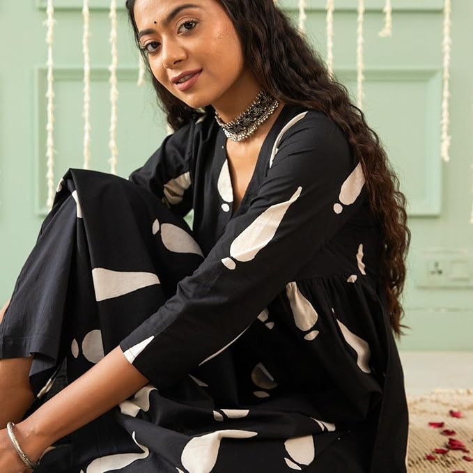 Sleeve type3/4 Sleeve LengthCalf Length Neck styleV-Neck PatternTeardrop Motif StyleAnarkali Care instructionsMachine Wash Country of OriginIndia