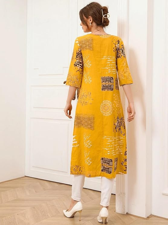 Material compositionCotton Blend Sleeve typeElbow Length Sleeve LengthBelow Knee Length Neck styleRound Neck PatternPrinted StyleRegular Country of OriginIndia