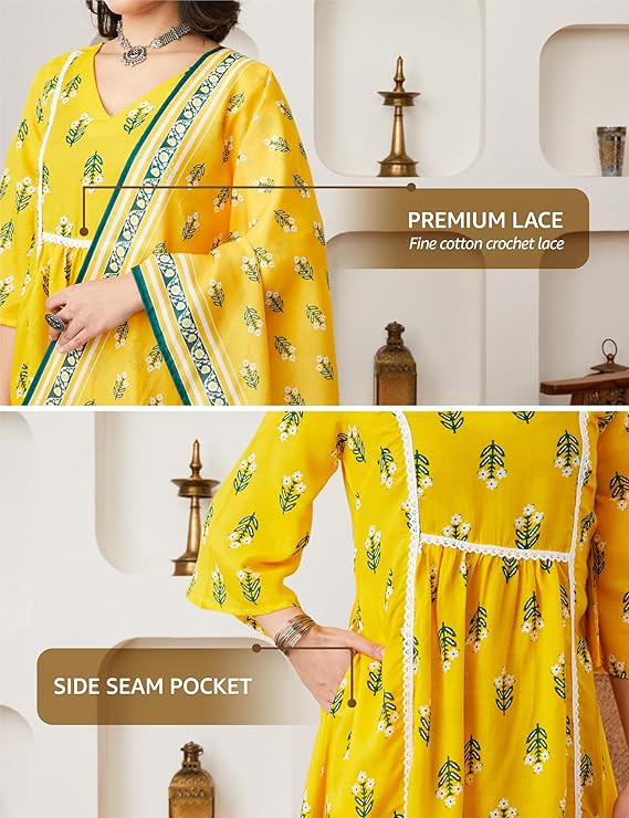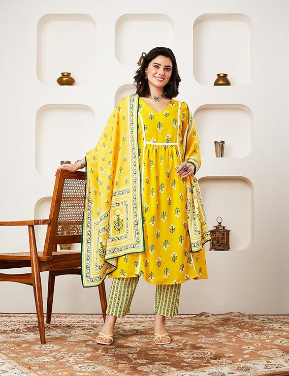 Women's Printed A-line Kurta Pant Set with Dupatta