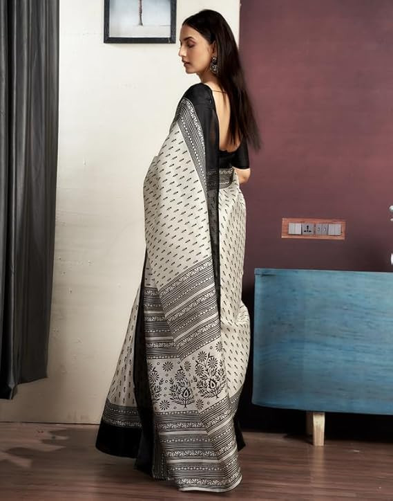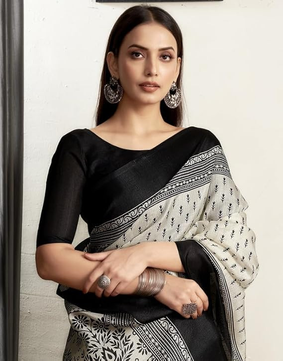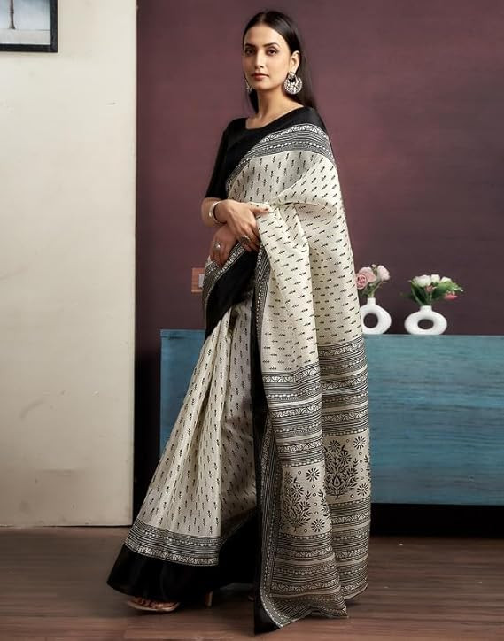 Women's Bagalpuri Silk Saree | Varli Printed Saree With Unstitched Blouse Piece
