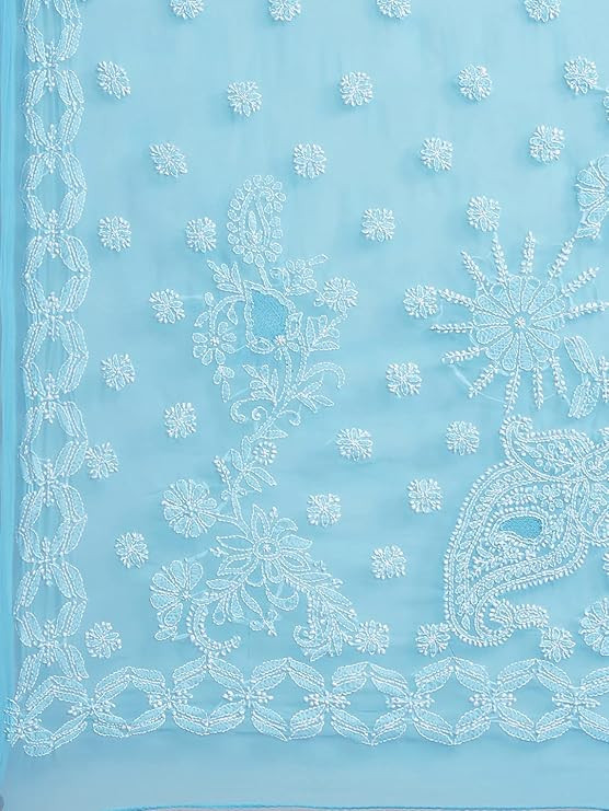 Women Faux Georgette Hand Embroidered Lucknowi Chikankari Georgette Saree With Unstitched Blouse Piece