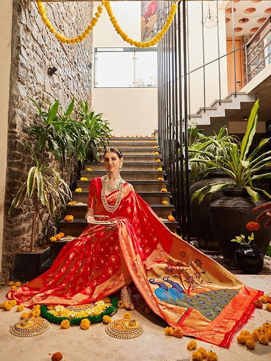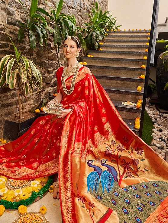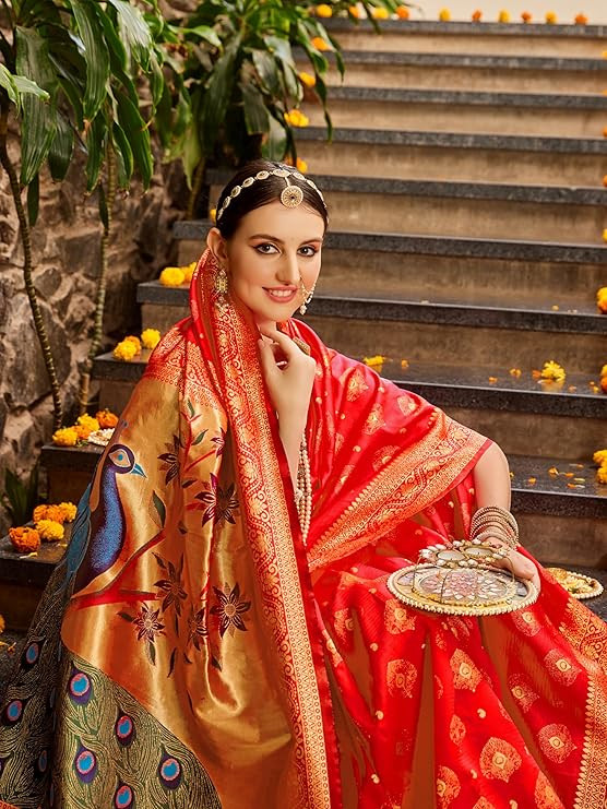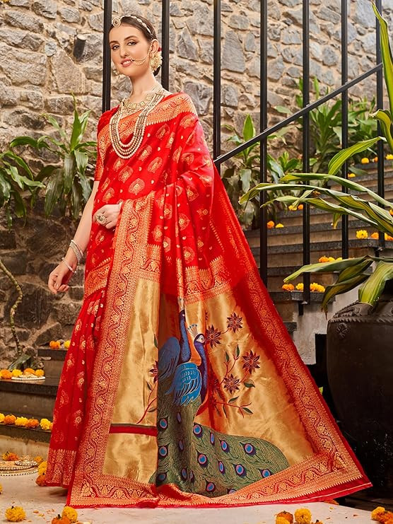 Women's Paithani Silk Blend Woven Saree With Blouse Piece