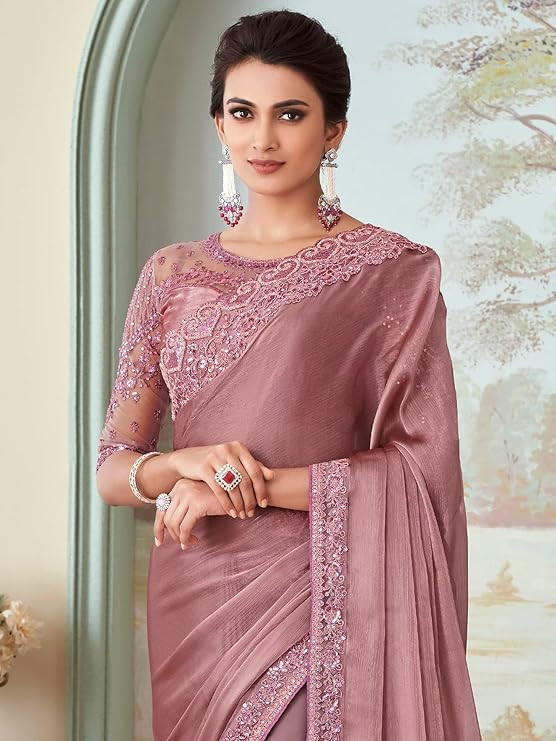 Women's And Girls Embroidery Lace & Sequence Embroidery Chiffon Saree With Unstitched Blouse Piece