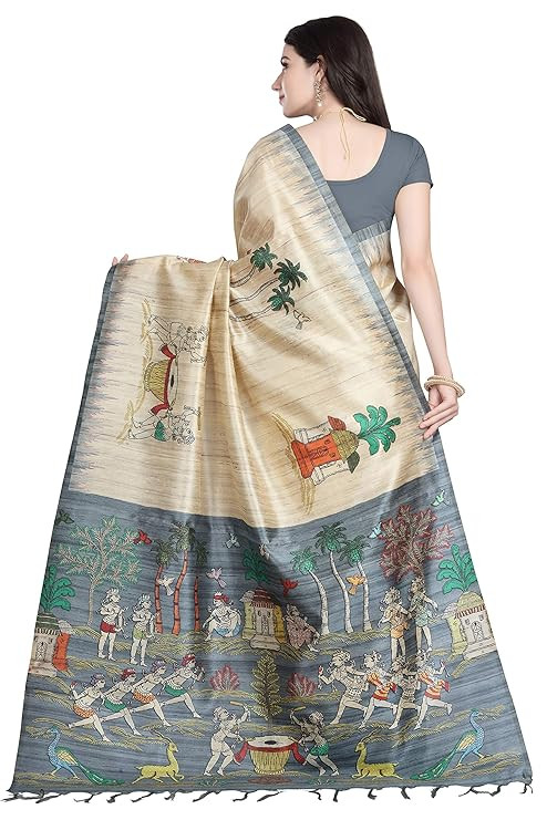 Women's Printed Art Tussar Silk Bhagalpuri Saree With Blouse Piece