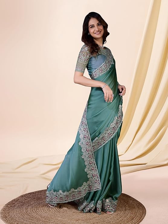 Grey Embroidered Saree with Heavy Work Blouse