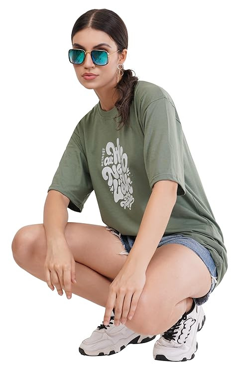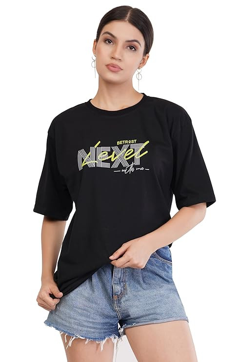 Women Printed Round Neck Oversized Baggy Fit T-Shirt | Loose Fit Drop Shoulder T-Shirt (Pack of 4)