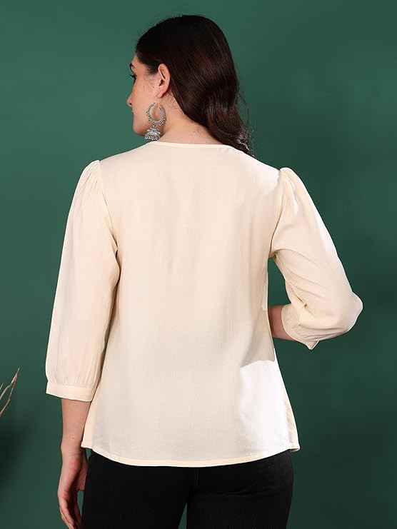 Material compositionRayon PatternSolid Fit typeRegular Fit Sleeve type3/4 Sleeve Collar styleKeyhole Collar StyleWestern Country of OriginIndia