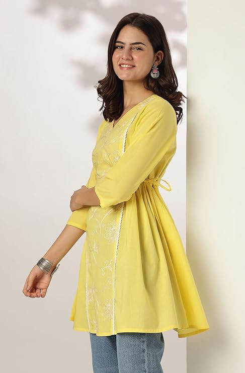 Material compositionCotton PatternEmbroidered Fit typeRelaxed Fit Sleeve type3/4 Sleeve Collar styleV-Neck LengthLong Length Country of OriginIndia