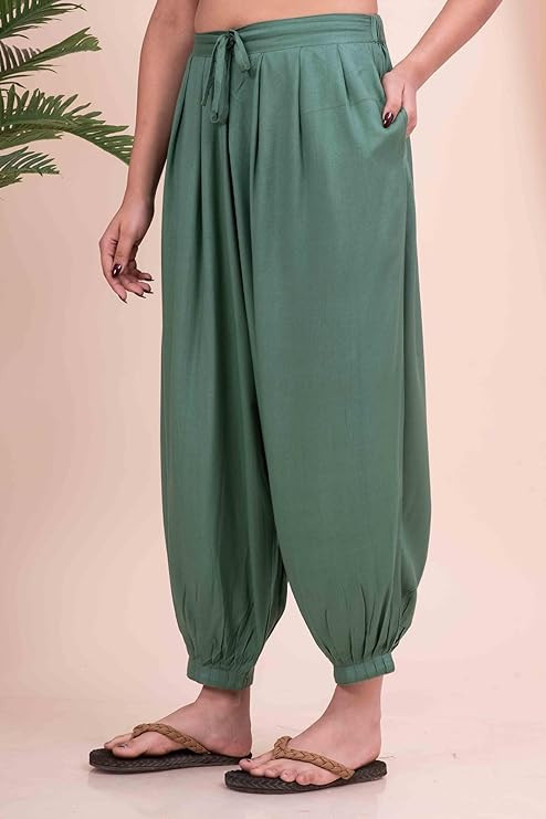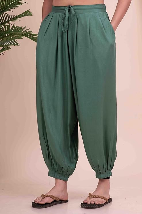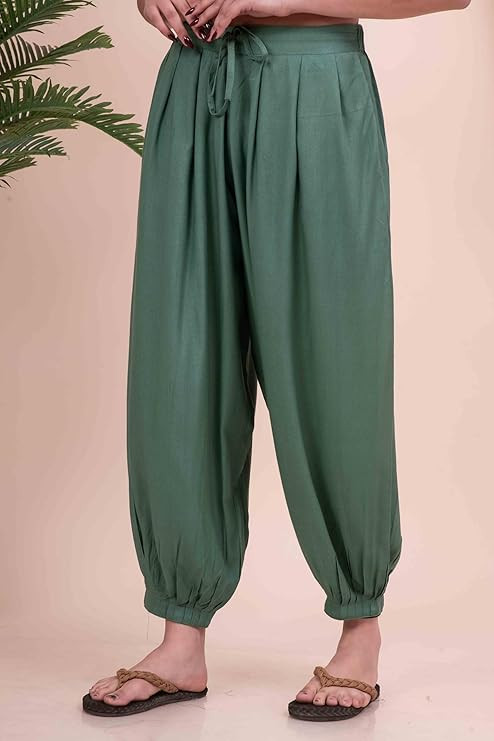Solid Pattern Relaxed Loose Fit Viscose Afghani Salwar Patiala Pathani with Elastic Waist Baggy Yoga Boho Aladdin Pant Women's Harem Pants