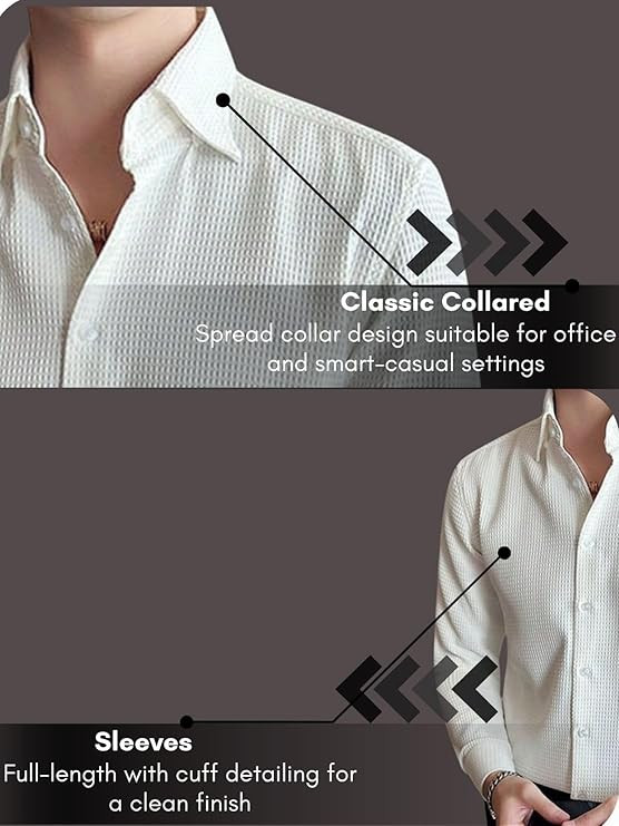 Men's Formal Button Down Shirt – Slim Fit Shirt's for Men | Textured Long Sleeve Polycotton| Business & Meeting Ready (Available in Plus Size and Combo Pack of 2)