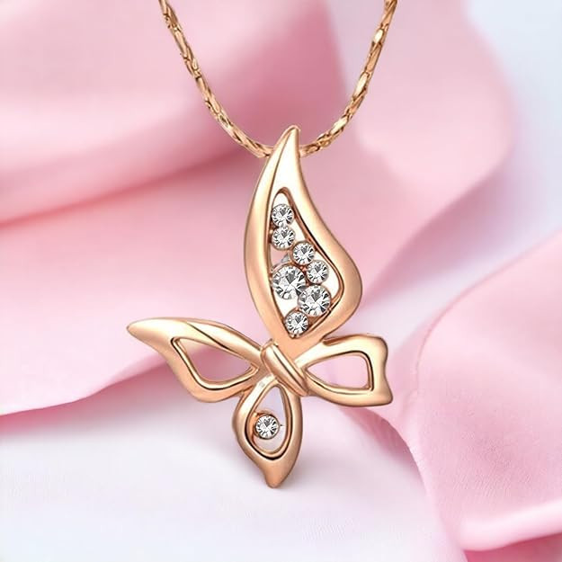 Crystals Wispy Butterfly Pendant Necklace