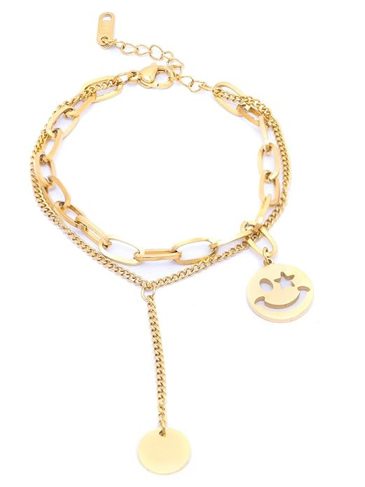 Stainless Steel Smiley Charm Adjustable Bracelet Jewellery