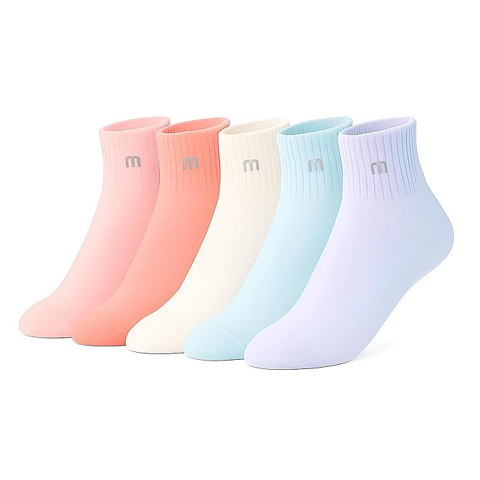 MULTI-PACK VALUE: Set includes 5 pairs of ankle socks in trendy colours - pink, white, beige, mint green, and black, each adorned with a charming heart pattern