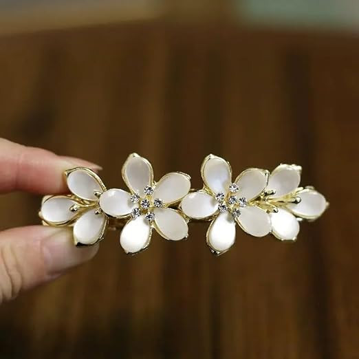 Elegant Vintage-Inspired Faux & Rhinestone Flower Hair Clip - Golden-Tone French White Floral Bridal Accessory for Weddings, Birthdays & Casual Attire - Chic Resin Headpiece with Gemstone Details, Bridal Hair Accessories