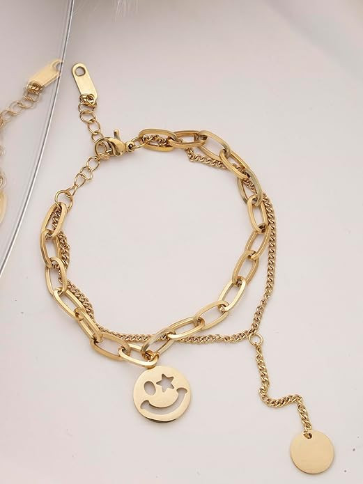 Western Stainless Steel Smiley Charm Adjustable Bracelet Jewellery for Women and Girls|Anti Tarnish Jewellery|Gifts for Wife Girlfriend Mother Sister