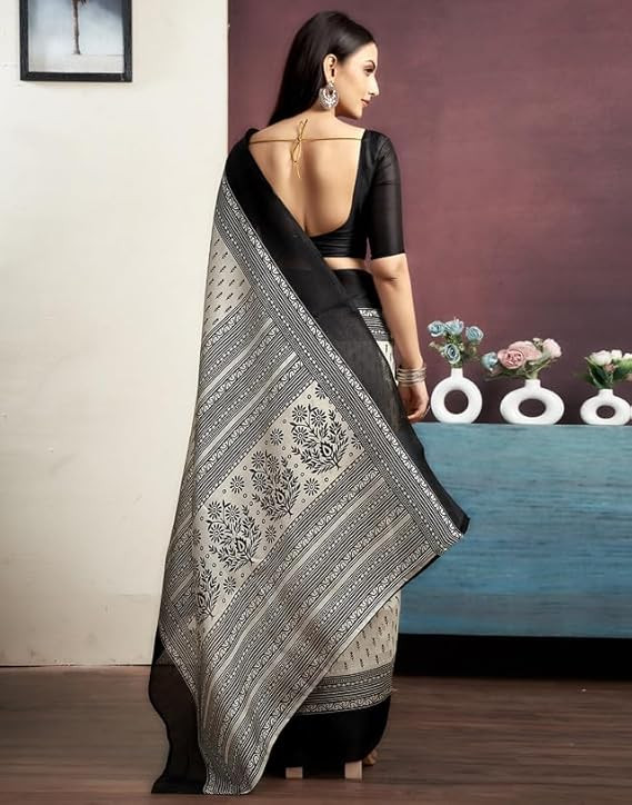 Women's Bagalpuri Silk Saree | Varli Printed Saree With Unstitched Blouse Piece