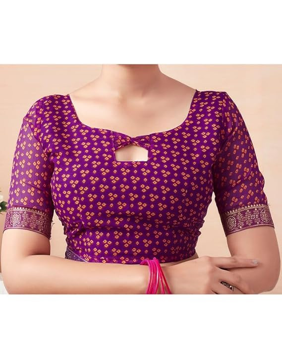 Women's Bandhani Printed Chiffon Saree with Blouse