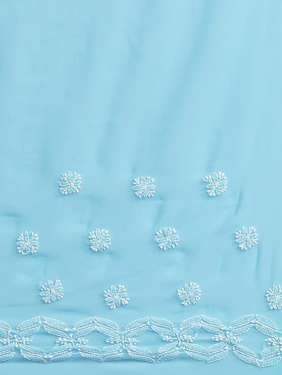 Women Faux Georgette Hand Embroidered Lucknowi Chikankari Georgette Saree With Unstitched Blouse Piece