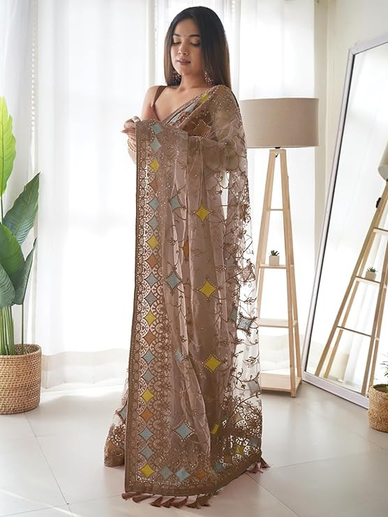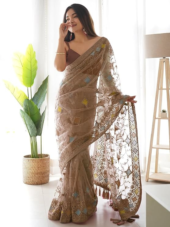 This saree from the house of AKHILAM is made from Net and is Pink in color. AKHILAM Ethnic Sarees comes With Blouse Piece, Which can be Stitched according to Your Taste and Preference. This Saree is Crafted by Skill Craftsmen without Compromising on its Quality. With This Beautiful Design and Fabric, This Saree will fetch You Oodles of Compliments and Praise. saree fit size is 5.5 mtr saree & 0.8 mtr blouse, Free Size |.