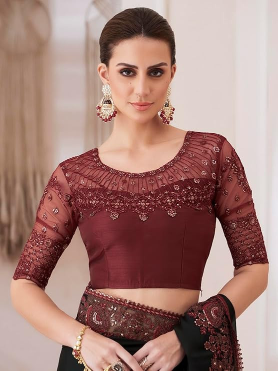 Women's Pure Chiffon Embellished Saree With Unstitched Blouse