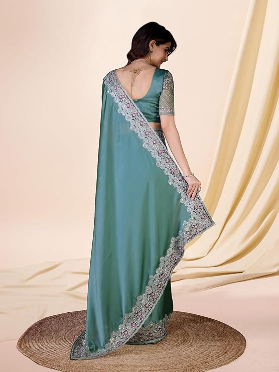 Grey Embroidered Saree with Heavy Work Blouse