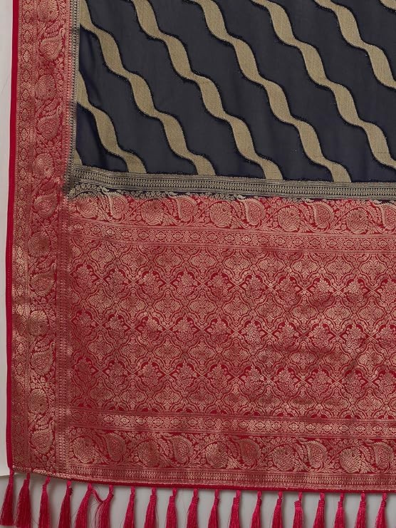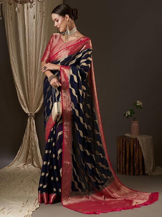 Saree Color : Navy Blue || Blouse Color : Pink Saree Fabric : Georgette || Blouse fabric : Georgette Pattern : Woven Design || Print : Abstract Saree Work Details : Tassels and Latkans || Saree Border : Zari Saree Length : 5.5 Mtr || Blouse Piece Length : 0.8 Mtr Package Contains : 1 Saree with 1 unstitched Blouse Piece