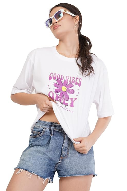 Women Printed Round Neck Oversized Baggy Fit T-Shirt | Loose Fit Drop Shoulder T-Shirt (Pack of 4)