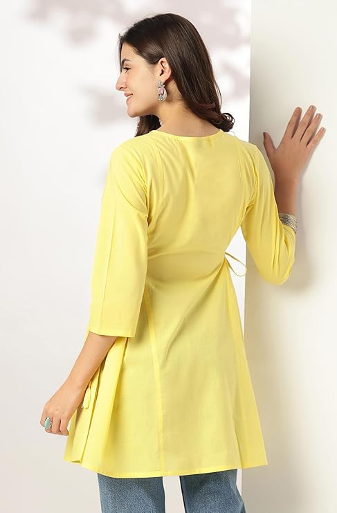Material compositionCotton PatternEmbroidered Fit typeRelaxed Fit Sleeve type3/4 Sleeve Collar styleV-Neck LengthLong Length Country of OriginIndia