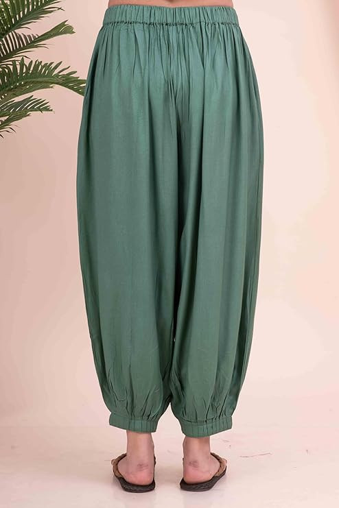 Solid Pattern Relaxed Loose Fit Viscose Afghani Salwar Patiala Pathani with Elastic Waist Baggy Yoga Boho Aladdin Pant Women's Harem Pants