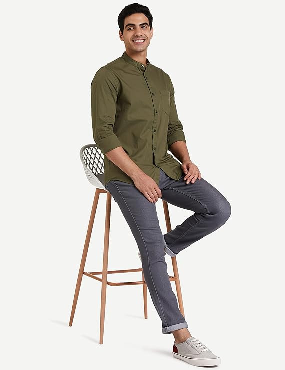 Men's Cotton Shirt | Chinese Collar | Casual | Plain | Full Sleeve | Summer - Regular Fit (Available in Plus Size)