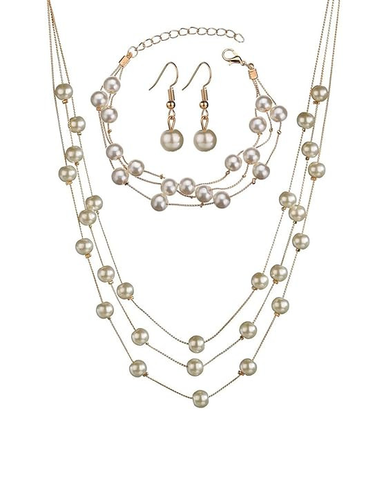 Pearl Multilayer Necklace Earrings & Bracelet